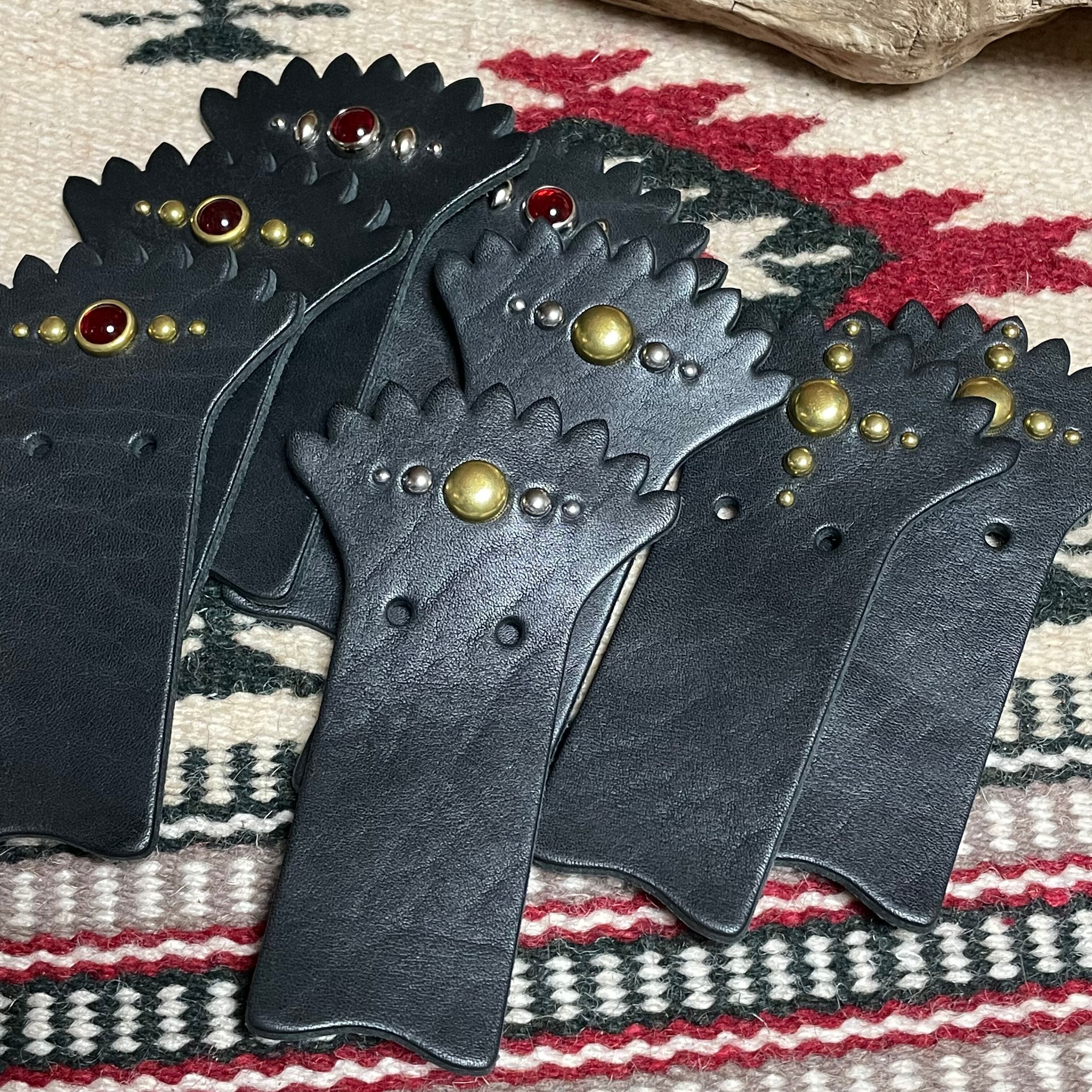 ブラックワイルドサドルレザーにスタッズを打ち込みました。